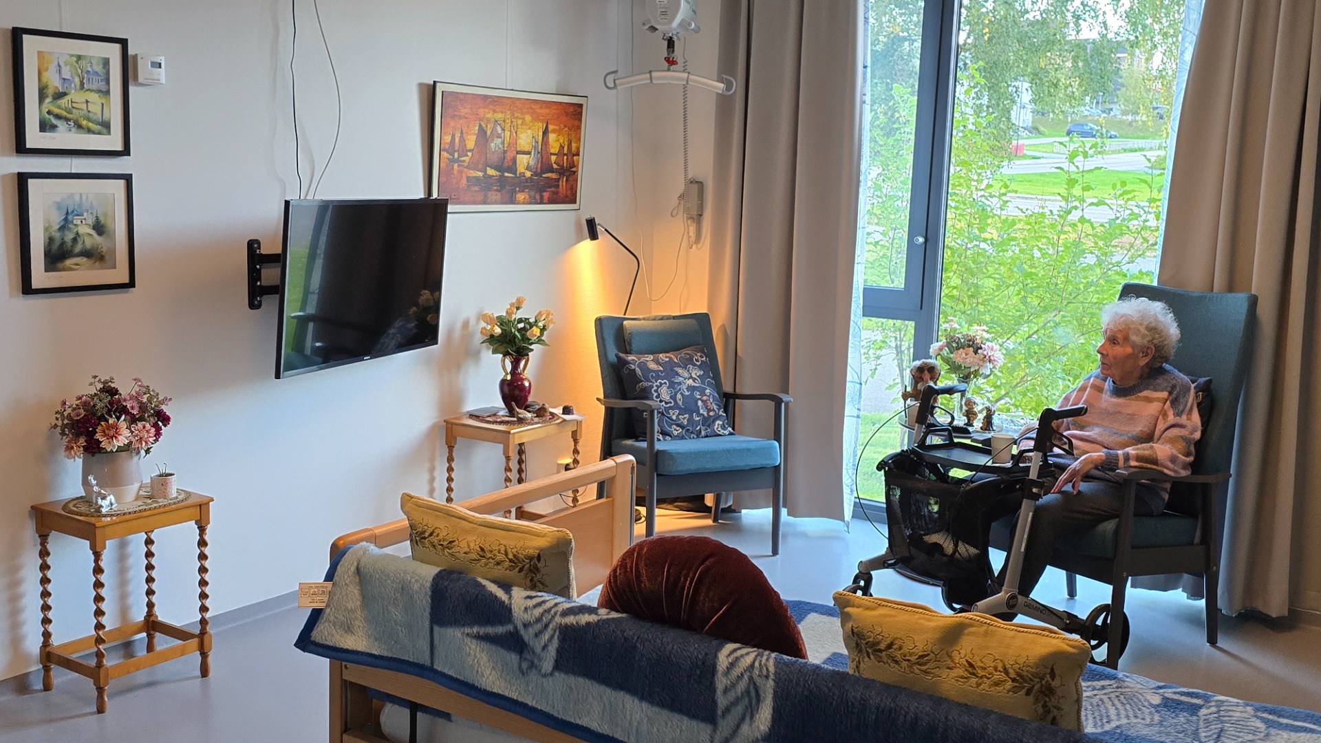 Det er godt for mor å slappe av i hyggelige omgivelser. Rommet til min mor er hjemme hennes nå. Å lage det litt "Hjemmekoselig" gjør hverdagen god. Her får hun stell og omsorg hele dagen. Maten kan hun spise sammen med de andre på avdelingen, eller få det servert på rommet de dagene hun ønsker det.
