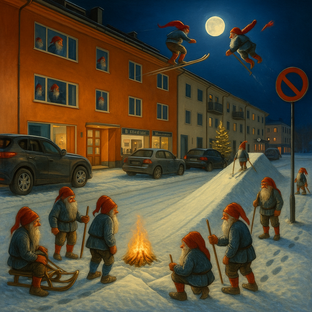 Men fjøsnissene holdt ut. De lo, de sang, de holdt rundt hverandre når kulda tok tak, og de visste at turen var verdt det. For reisen hadde ett mål: å spre juleglede dit de skulle, og ingen vinterstorm kunne stoppe dem når de først var på vei.